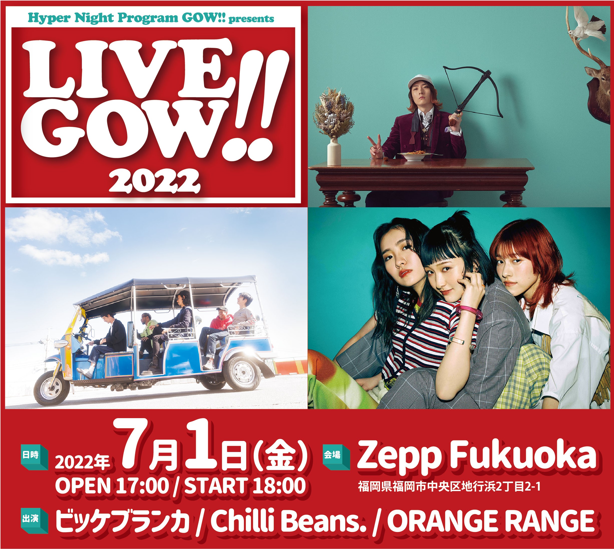 7月1日(金) Zepp Fukuokaで開催されるFM FUKUOKA主催イベント「LIVE GOW!! 2022」の最終ラインナップが発表された。