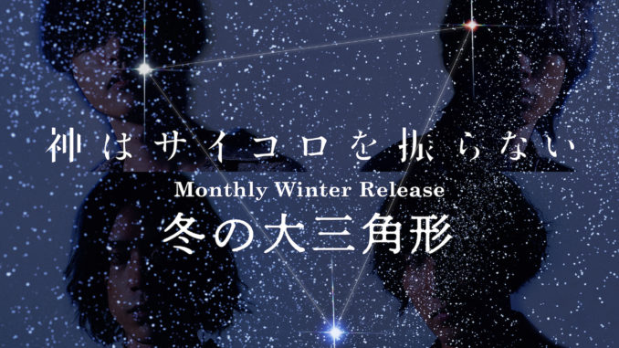そんな神はサイコロを振らないが、『いつも楽曲を聴いてくれるリスナーやファンの皆さんの生活を「夜空」だとするならば、この3曲が、この季節にひときわ際立つ“冬の大三角形“のような存在であって欲しい』という願いを込めて、Monthly Winter Release “冬の大三角形“ と題し、新たな3楽曲を11月、12月、1月の冬のシーズンに、New Digital Singleとしてマンスリーでリリースすることが決定した。夜空が美しく輝く“冬の大三角形“のキービジュアルも公開。楽曲についての情報は随時解禁するため、楽しみに待っていてほしい。