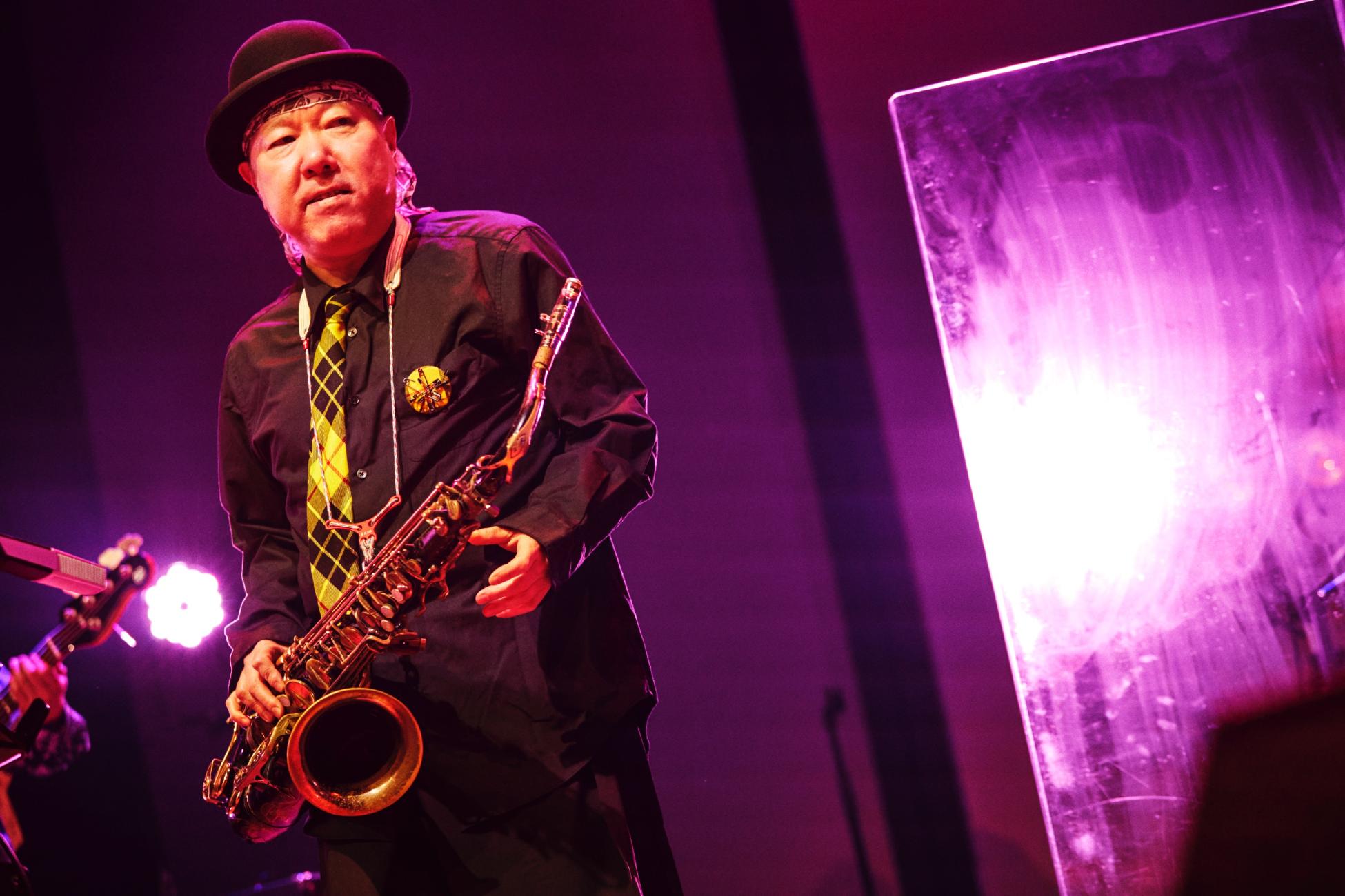 nishi-kenの叩くタンバリン、山口の歪んだギター、リズム隊の生むグルーヴに呼応するように、幾度となくシャウトしたり、華麗にターンしたり、ジャケットをはだけたり、ラストは巻き舌になったり。