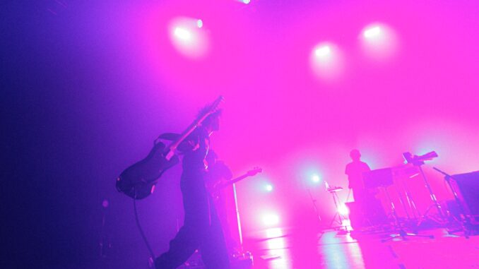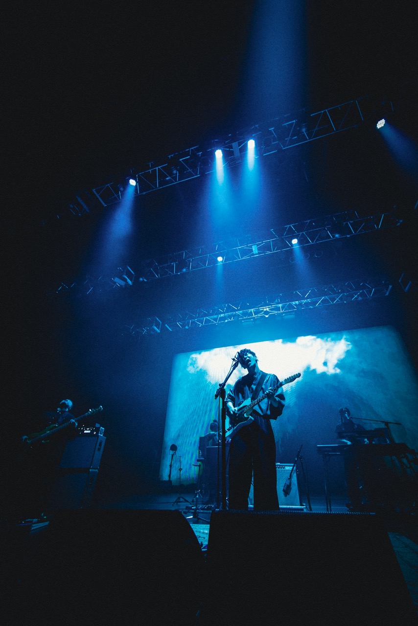 ライブ本編が始まる前、 会場を照らしていたのはブルーを基調としたライティング。 ファンにとってはこれまでのTKのライブでもおなじみのサウンド で、最新アルバム『Whose Blue』で初収録となった「GRANT」という音源だ。 ライブ前の緊張を解きほぐすように流れるSEは心地よく聴こえ、 それと同時に「いよいよライブが始まる」 という期待感に包まれる。