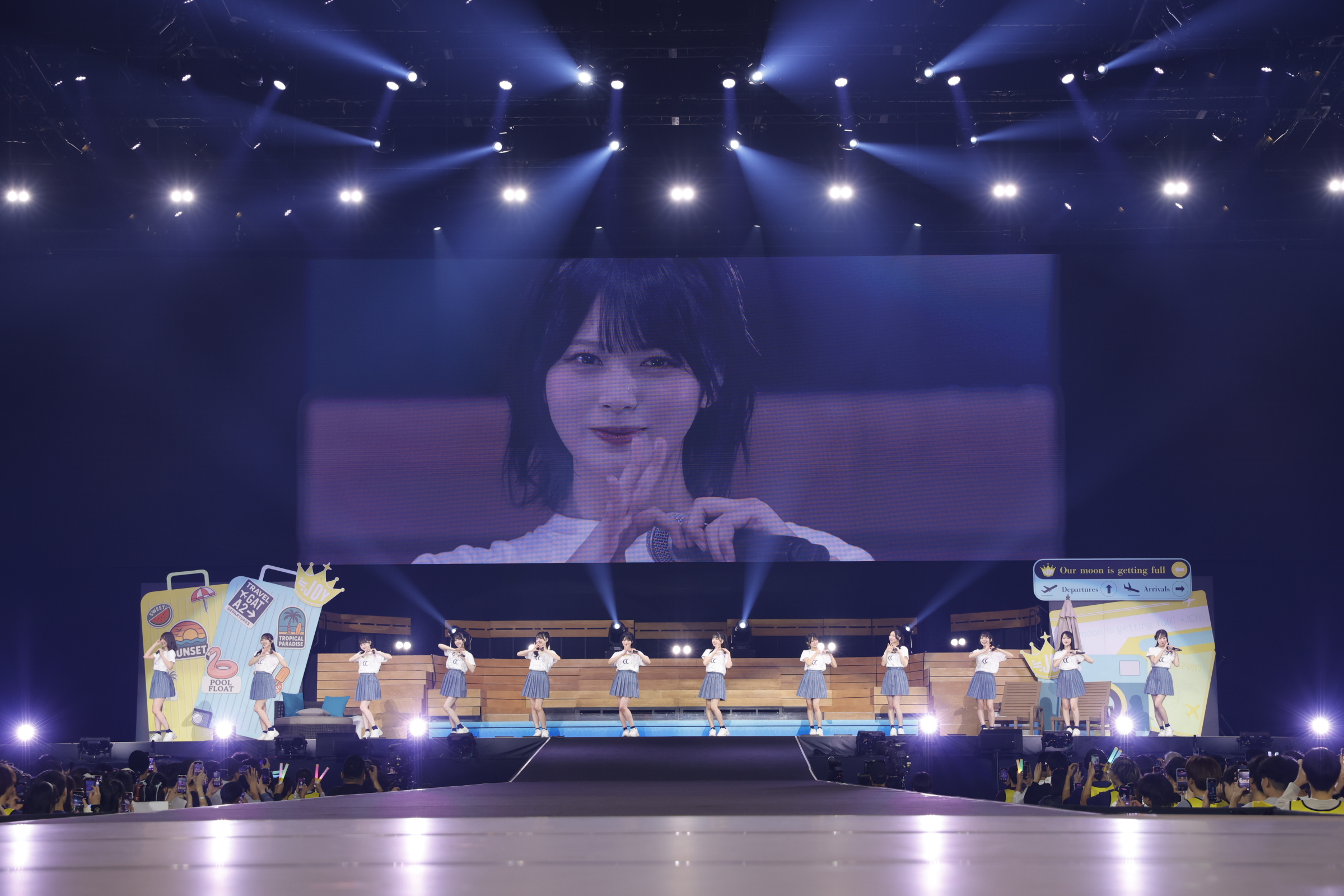 今回のツアーではメンバーがキャビンアテンダントに扮し、空の旅をイメージした世界観の中でライブが進行した。CA風の衣装を身にまとってステージに登場した≒JOYは、ツアーのテーマソング『いま、月は満ちる』(≒JOY 全国ツアー2025「Our moon is getting full」テーマ楽曲)で勢いよくライブをスタートさせる。『いま、月は満ちる』は≒JOYのプロデューサーである指原莉乃が、過去に書いた楽曲のカバー。観客による息の合ったコールも相まって、開演早々に大きな盛り上がりが生まれた。