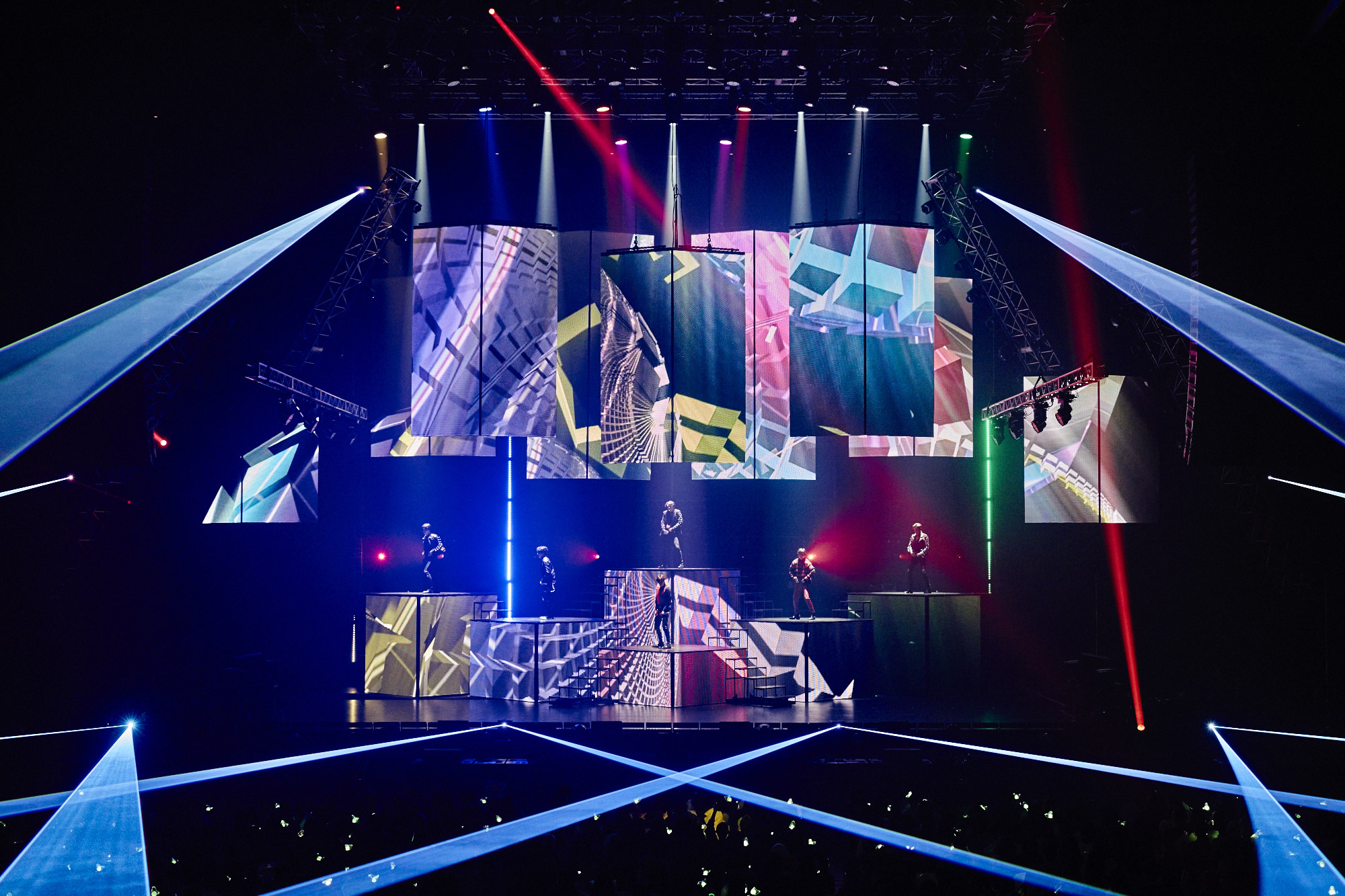 マークとベンベンの「COLD」ではステージ上に電飾をまとったワイヤーカーが登場し、リッチでクールなヒップホップを披露。