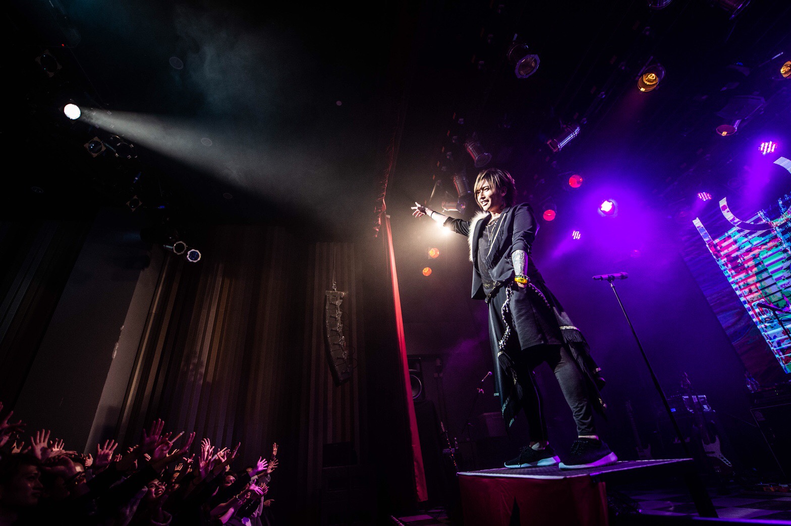 ステージに最初に登場したのは虎。その後、ヒロト、Nao、沙我、の順にステージセンターのお立ち台に上がり、ポーズを決めて上海のファンを煽る。最後に将が拳を高々に上げながら悠々と登場すると、フロアのファンの歓声と動きは一つにまとまり、大きなうねりとなった。そのまま「UNREAL」へ突入し、この夜のライブは幕を開けた。