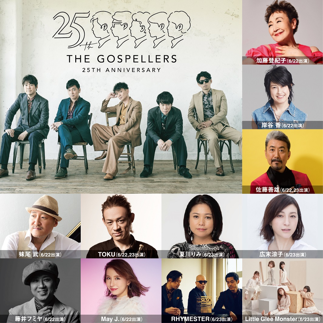 2019年12月21日にメジャーデビュー25周年を迎えるゴスペラーズが、アニバーサリーを記念しグループ史上初となるコラボレーションライブイベント「ゴスフェス」を6月22日、23日に東京国際フォーラム ホールAで開催。