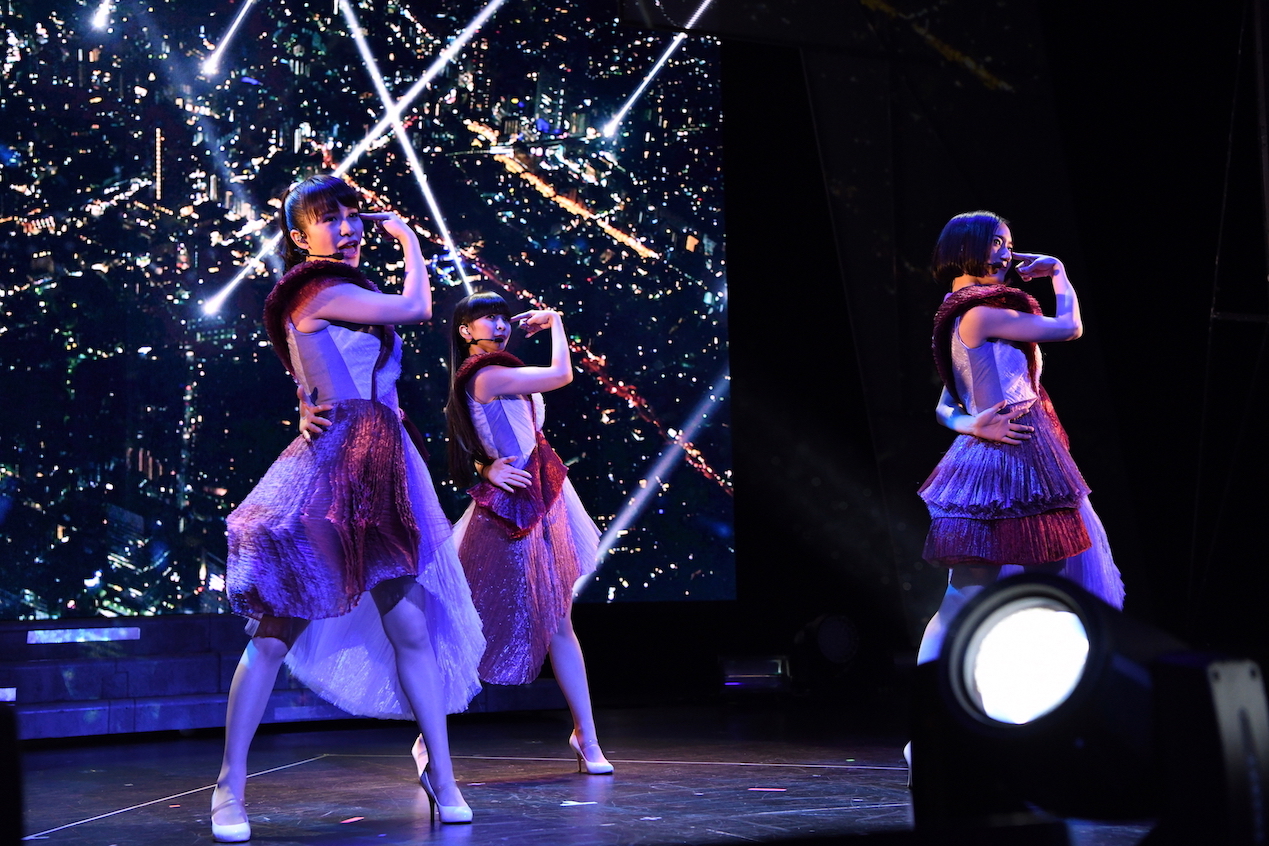 「TOKYO GIRL」からの後半は、前半のアプローチと対照的に、本物の光を集めて3人の生身のダンスの美しさを際立たせる場面が続いた。海外人気抜群の「Pick Me Up」では「Yes!」と歓喜の声が飛び交う。カンフーを取り入れたカッコいいPerfumeの代名詞「FLASH」では、一瞬たりとも緊張感を途切れさせない魂の舞いに、みんな息を飲んで見入った。