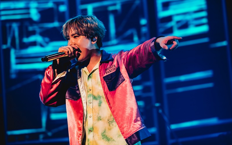 「バラードばかりで切なくなっちゃったから、僕らが好きな曲で盛り上げます」とホンギが言ってスタートしたのは、「Hold the moon」。ホンギが「大好き」と公言する「Golden」ではステップを踏んでシングアロングの声を浴び、「カモン!」とその声をさらに集めて一緒に盛り上がっていった。