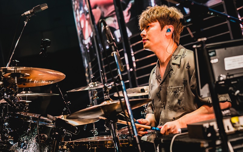 ラストのセクションは「FREEDOM」で幕開け。ホンギはウォーターガンを手にフロアに降りると、歌いながら客席に水をまき散らす。スンヒョンの雄叫びの後は、スンヒョンとジェジンも左右に伸びたステージを動き回る。ファンは「Sit Down!」というホンギの号令で一斉に椅子に座ると、サビで立ち上がりタオルを振り回す。その盛り上がりのまま、FT流パーティチューン「PUPPY」でファンとの掛け合いを楽しむと、「未体験Future」で大きな一体感に包まれた。ミンファンのドラムが勢いをつけて始まったのは、本編をしめくくる最新曲「God Bless You」。最後まで分厚い音の波を会場に巻き起こした。