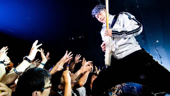 国内ツアーの初日である場内は熱気に包まれている。新曲の「Stars」でMIYAVIが登場すると、観客の大歓声が場内に響き渡った。続いて、昨年末発売したアルバム『SAMURAI SESSIONS vol.3 – Worlds Collide -』に収録されたKREVA、三浦大知との「Rain Dance」をこの日はソロで披露し、冒頭から会場を大いに沸かせた。