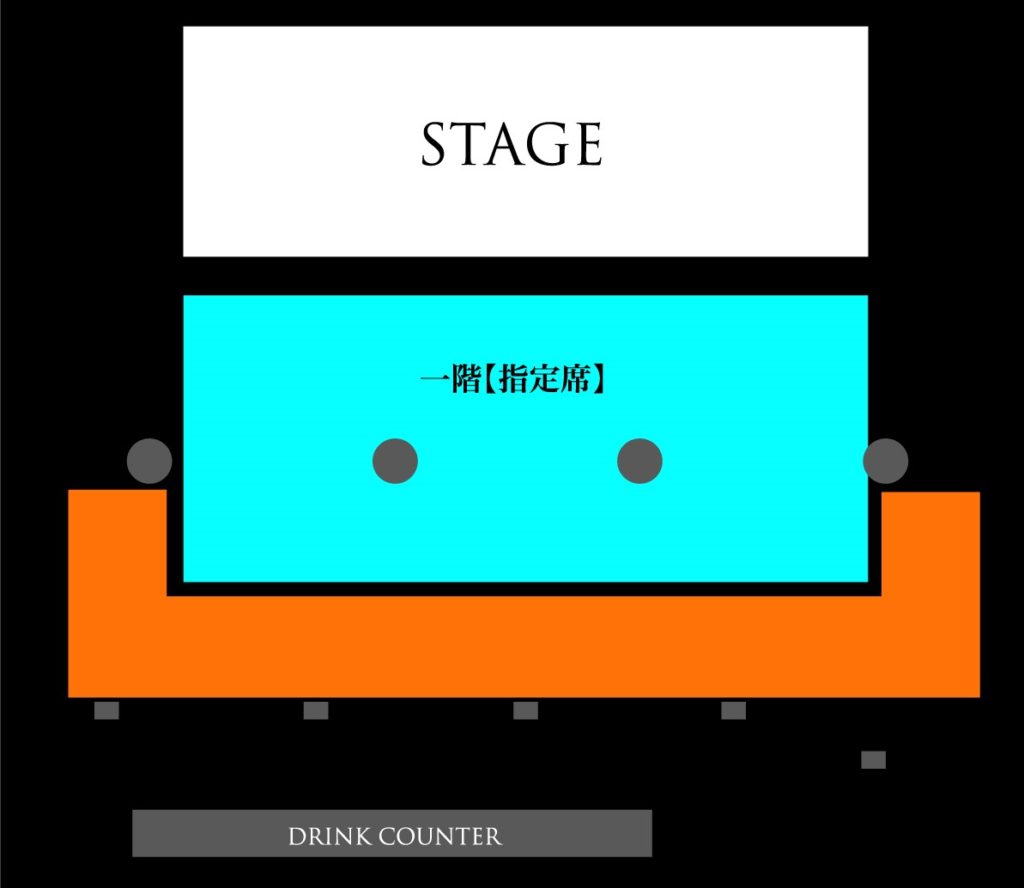 ・1階 [指定席] ¥9,000(tax in) ※ドリンク代別 ※GOODS付