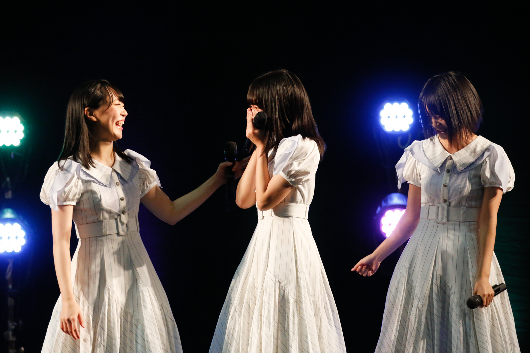 続いて3rdシングルのカップリングに収録されている楽曲をはじめとしたユニット楽曲を披露。『箱の中身はなんだろなゲーム!』の企画コーナーへでは、中身の見えない箱にあるものをメンバーが手だけで触り、何が入っているのか当てるというゲームに挑戦。『かぼちゃ』『剣道のお面』『風船』といった季節やメンバーの個性に分かれたお題が登場し、賑やかなステージとなった。