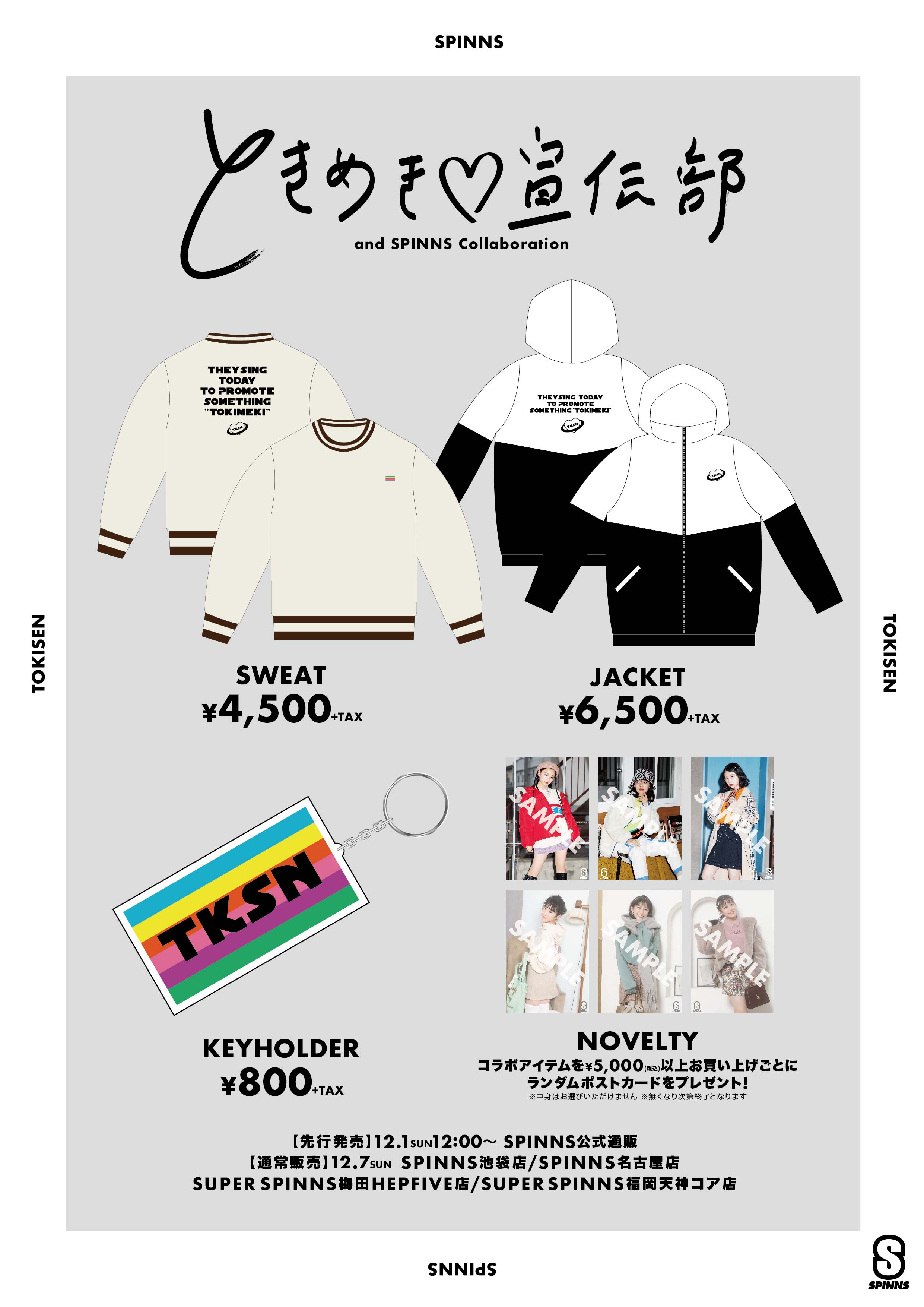 スターダストプロモーション所属の6人組アイドルグループ「ときめき♡宣伝部」が、原宿から全国へメンズ・レディースの洋服、カルチャー、スタイルを発信し続ける人気ファッションブランド「SPINNS(スピンズ)」とのコラボレーションアイテムを12月7日(土)に発売することが決定した。