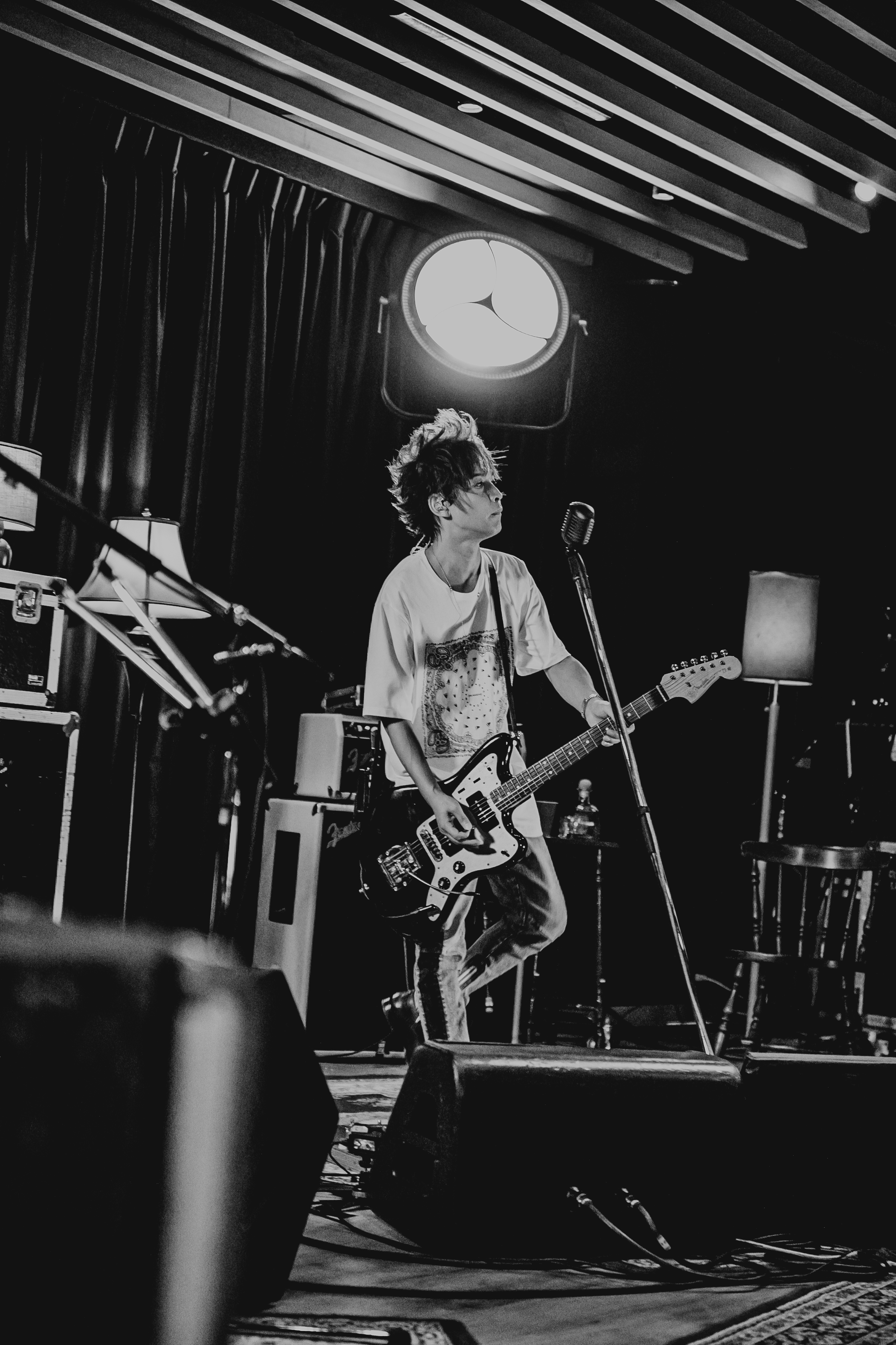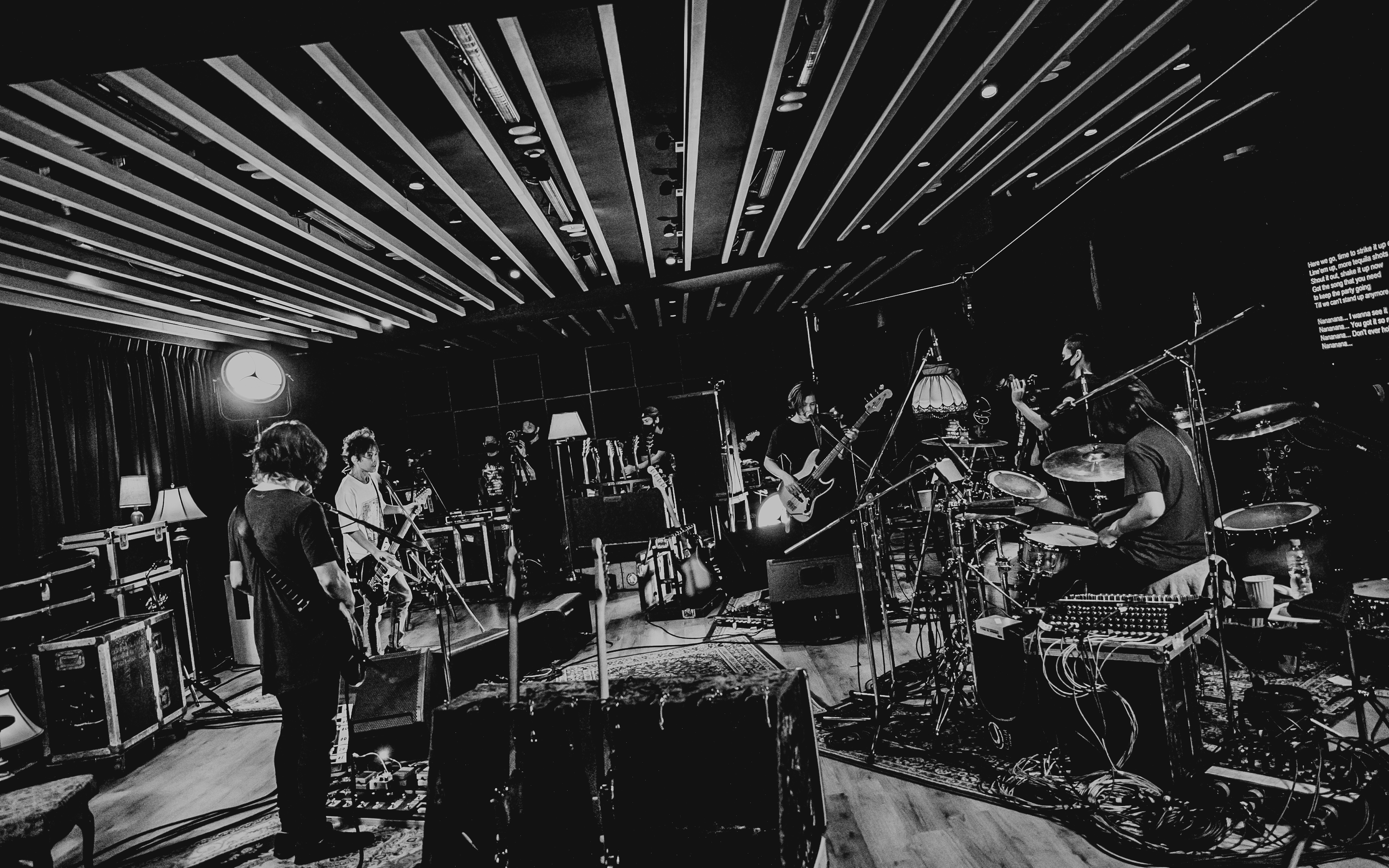 Murataが哀切を帯びたギターフレーズを掻き鳴らし、u:zoが地を這うようなベースの律動を加え、Ryoのドラムが全身に響く鼓動を与えていく。音源とも違う、また新たにアップデートされたグルーヴは、音源の段階で描かれた設計図をさらに立体化するように、すべての音に瑞々しいまた新しい命が吹き込まれていた。