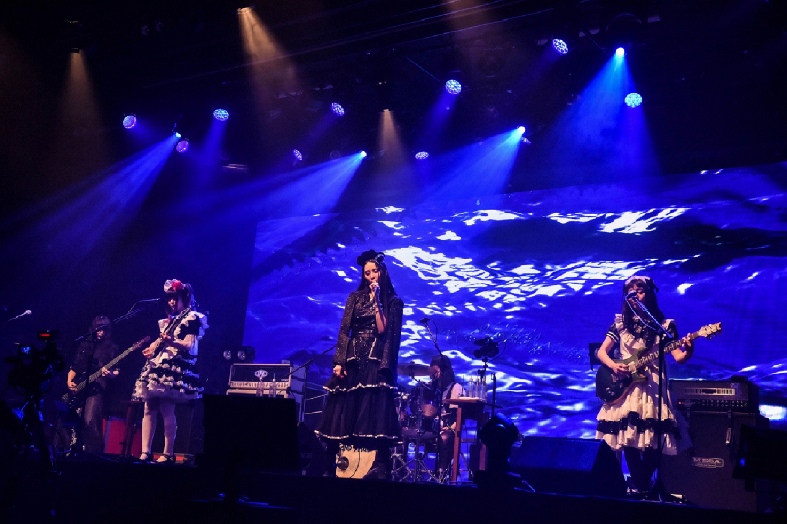 冒頭から攻め続けたセットリストの中、一変してステージは暗転。儚げなイントロが印象的な「start over」の演奏が始まると、曲に合わせて、ロマンティックな映像が背後に映し出される。BAND-MAIDからの少し早めのクリスマス・プレゼントだ。