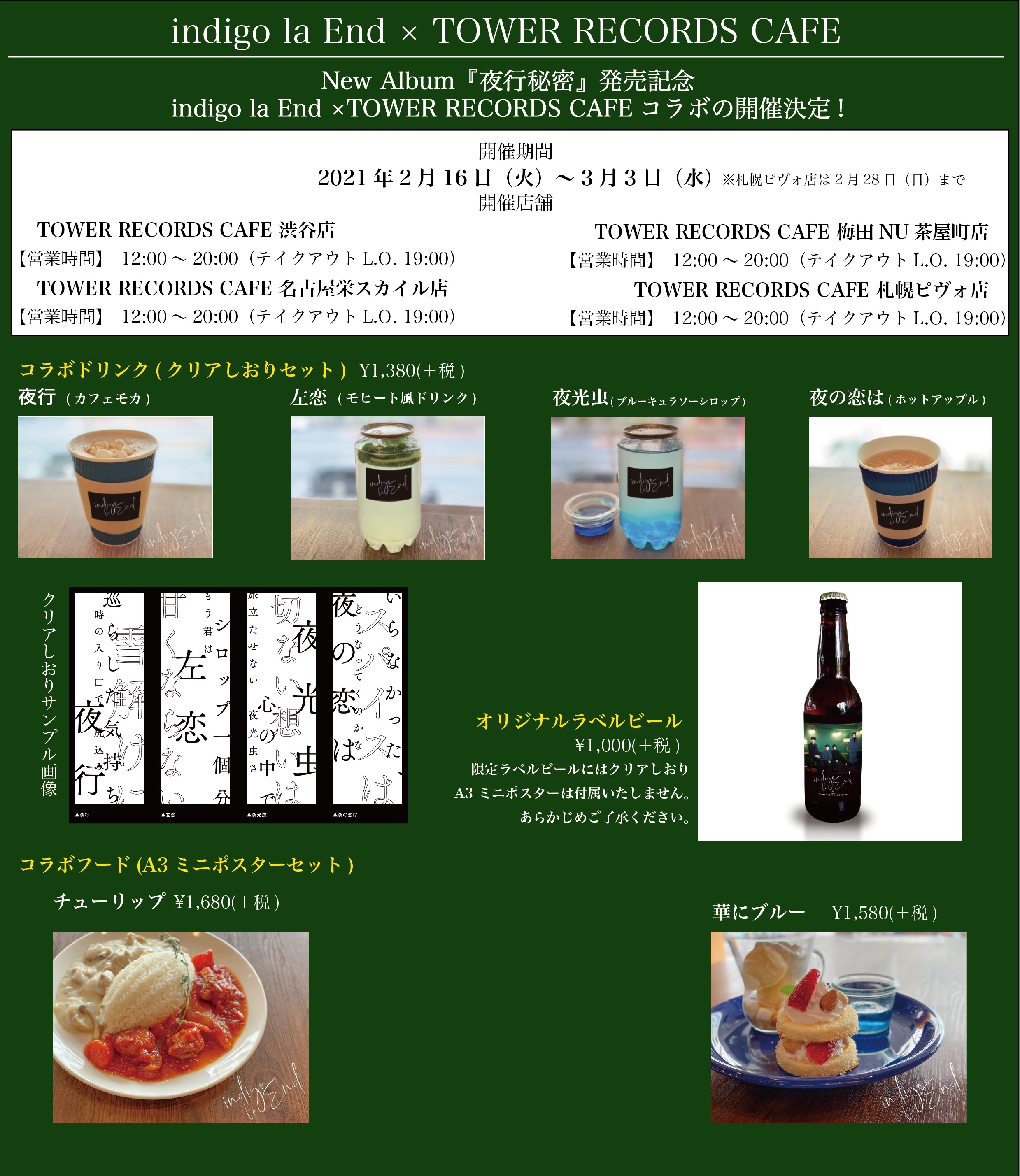 【indigo la End × TOWER RECORDS CAFEコラボ】