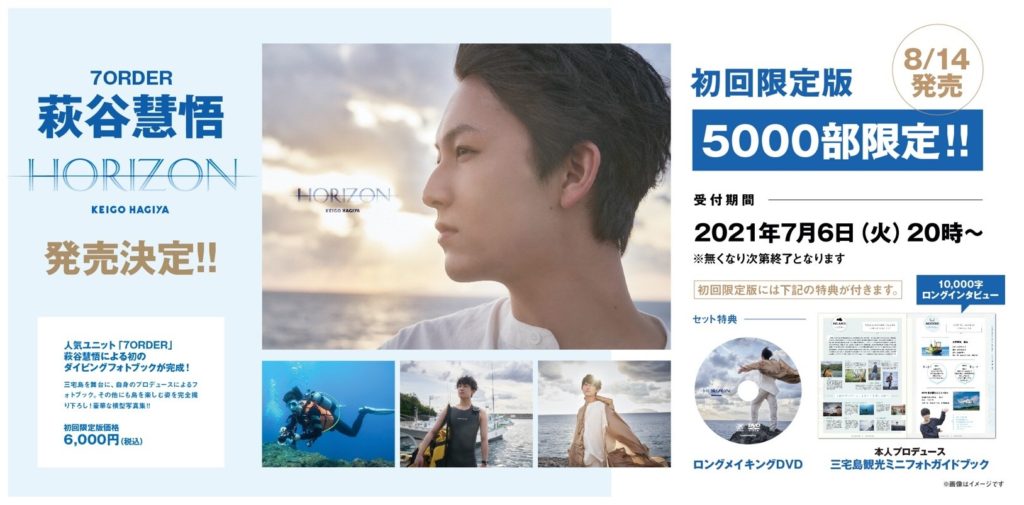 2021年8月14日(土)に7ORDERのメンバー「萩谷慧悟」がソロでの出演となるフォトブック『HORIZON』を発売が決定した。