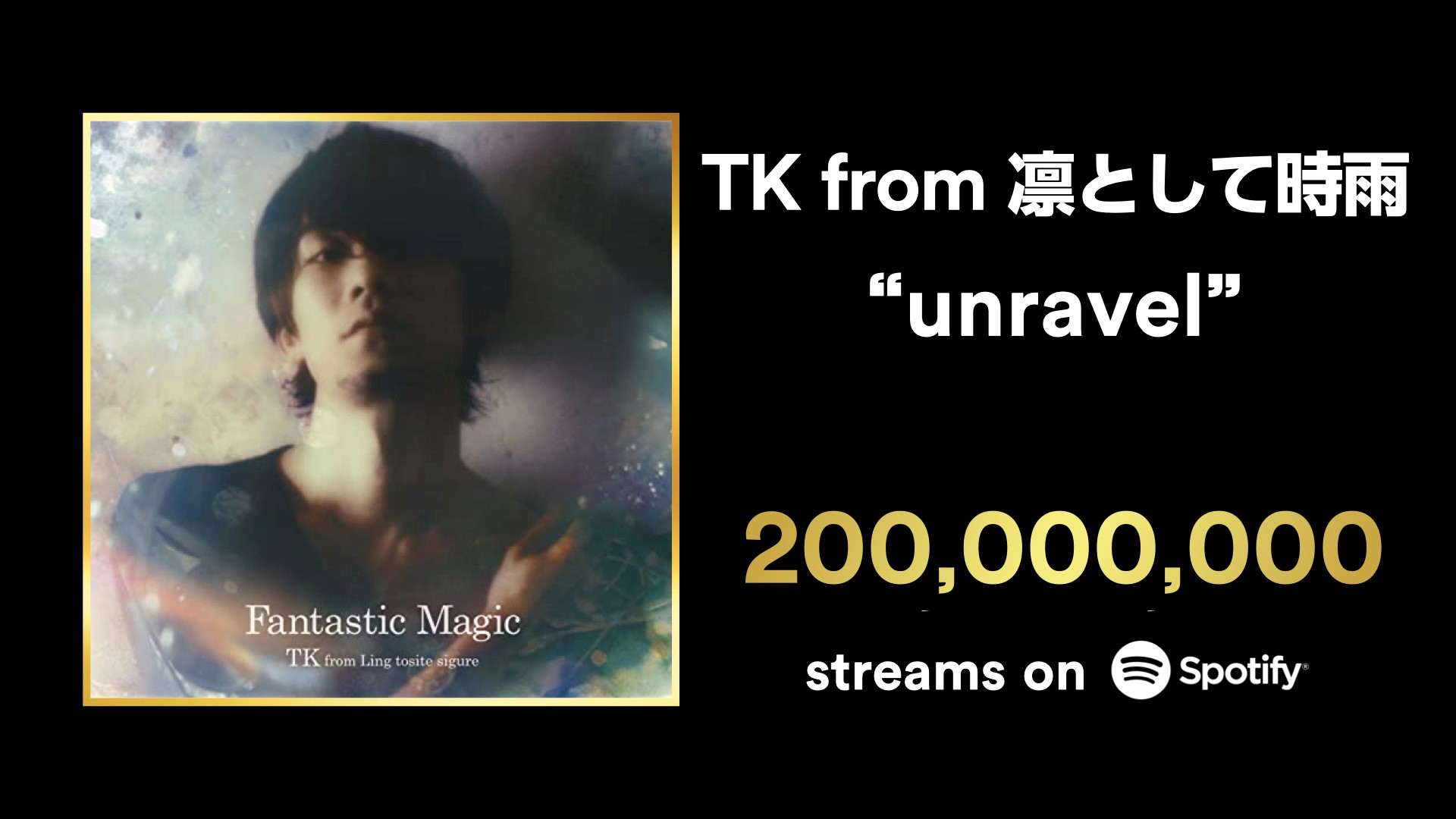 TK from凛として時雨が2014年にリリースした「unravel」が世界最大の音楽配信サイトSpotifyにて累計再生回数が2億回を突破したことがわかった。Spotifyのみで2億回再生を突破しているのは、「LiSA/紅蓮華」「YOASOBI/夜に駆ける」「Teriyaki Boyz/Tokyo Drift」「Eve/廻廻奇譚」など海外でも人気が高い数曲のみだ。